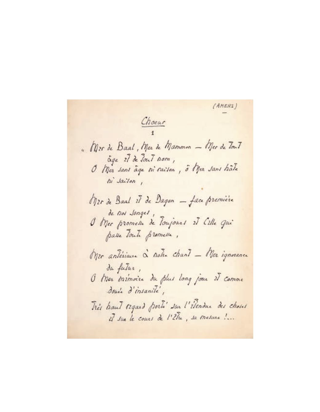 Il transcrit, dans la grande et élégante graphie du poète, la première des cinq parties du
