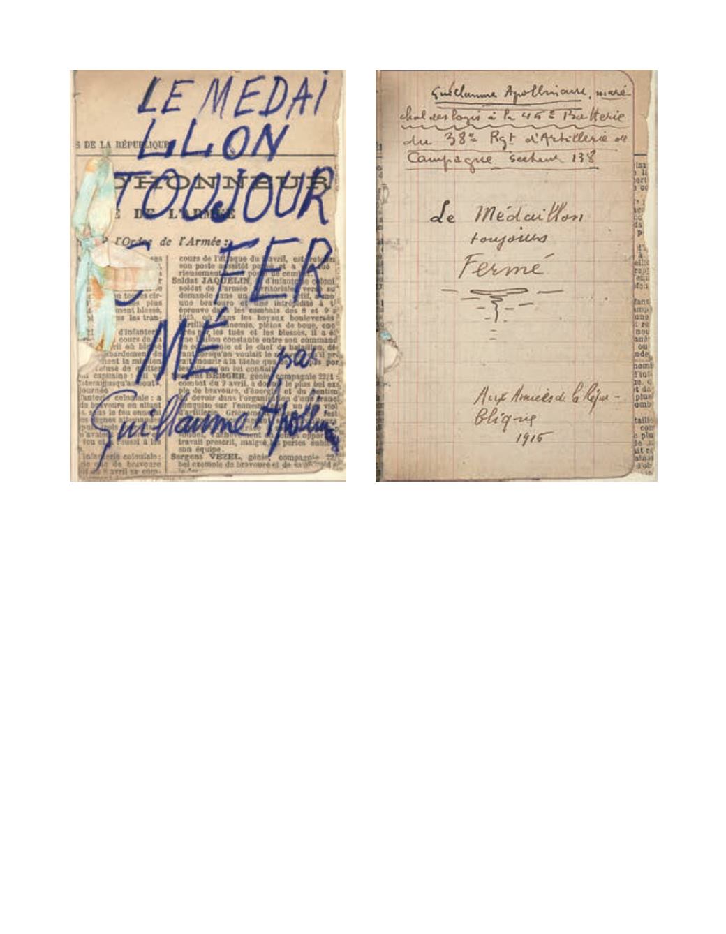 Primitivement broché au front, par Apollinaire lui-même dans un fragment du “Bulletin des Armées de la