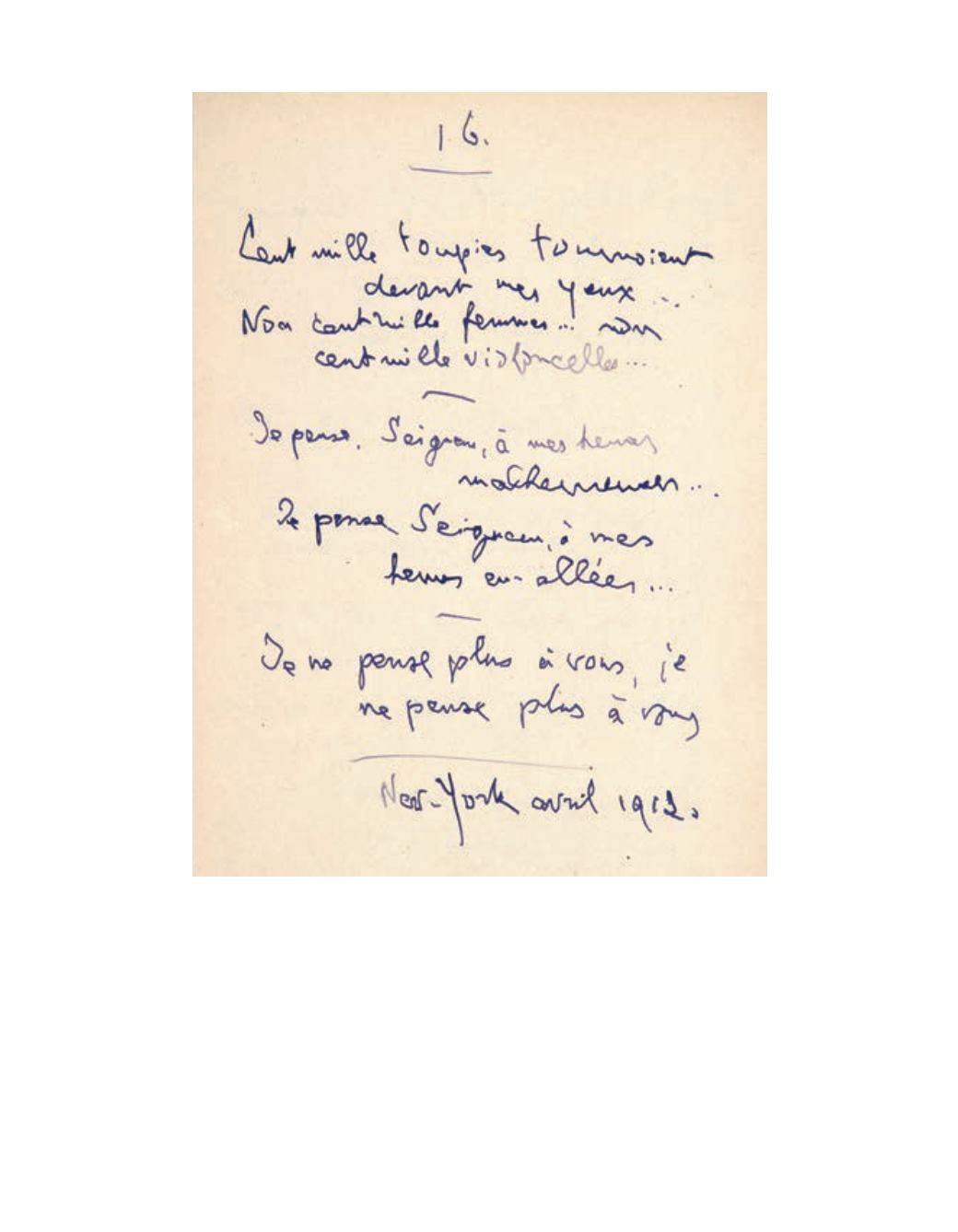 Les deux dernières pages (numérotées 15 et 16) comportent la fin du poème de la main de Cendrars, 13 vers,