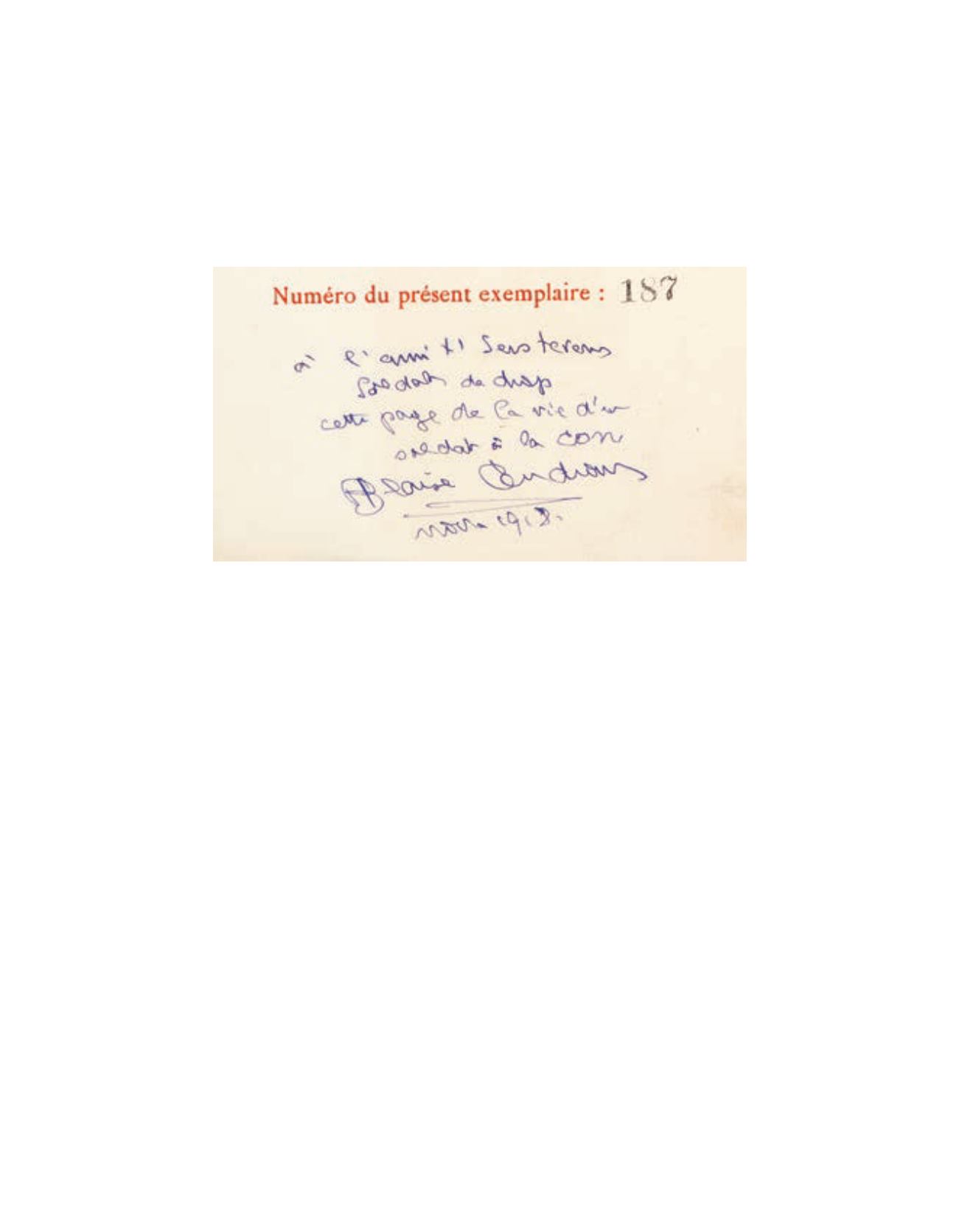 , Cendrars a ajouté la mention :