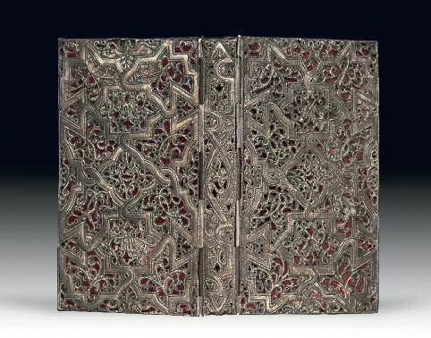 RÈS INTÉRESSANT SPÉCIMEN DE RELIURE EN ARGENT À DÉCOR AJOURÉ