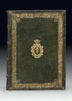 aux angles, armoiries au centre, dos orné de filets