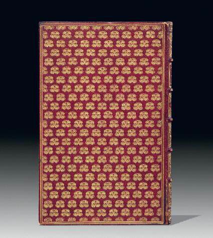 . Grand in-8, maroquin rouge, triple filet doré, plats entièrement couverts d’un semé de chiffres