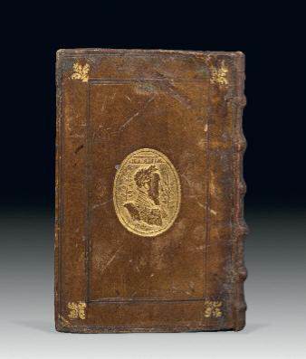 in-8, veau fauve, double encadrement de filets à froid, fleuron doré aux angles, médaillon doré au centre des plats