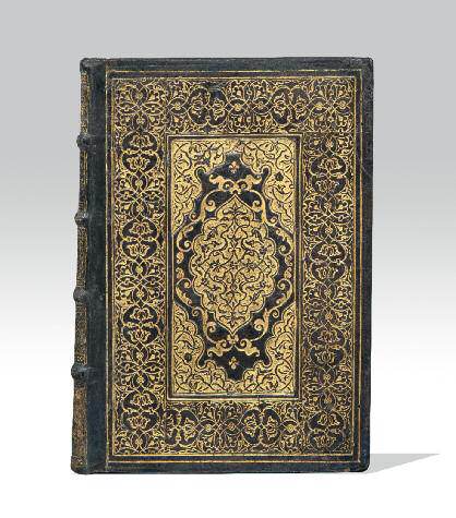 central d'inspiration persane réalisé à l’aide de plaques à fond doré, dos orné de filets et de fers dorés, tranches