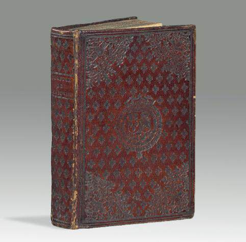 armoiries au centre, semé de fleurs de lis, dos lisse orné du même semé, tranches lisses argentées (