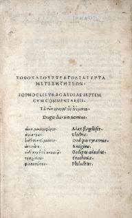 156 SOPHOCLE. Tragaediae septem cum commentariis. [En grec]. S.l.n.d. [à la fin] :