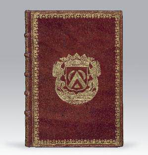 armoiries dorées au centre des plats, dos orné, roulette intérieure, tranches dorées (