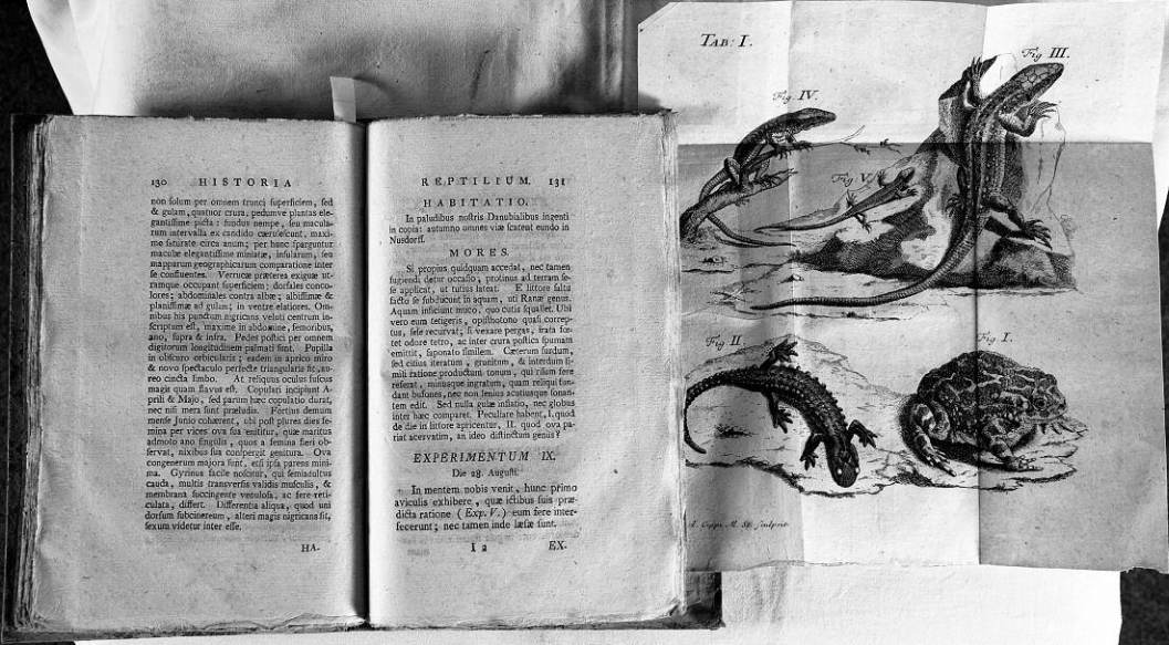 5 planches h.t dépliantes sous serpentes - Cartonnage papier rose frotté