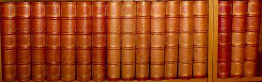 dos à 4 nerfs ornés de caissons dorés. Dos plus ou moins éclaircis pour certains volumes, reliures TB avec infimes