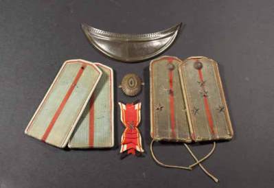 Accompagnées d’une cocarde, broche composée de rubans de décorations russes.