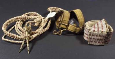 Deux (2) ceintures de l’uniforme militaire (dont 1 se compose de 3 parties) et une paire de fourragères avec