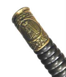 Monture laiton à une branche et quillon à enroulement pour le passage de la dragonne (joint), gravée des