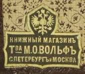 Les trois volumes comportent les étiquettes de la librairie «Société de M.O.Volf Saint-Pétersbourg et