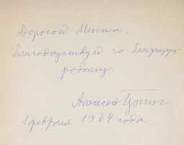 Comporte l’autographe - dédicace de Alexey Heering à Mikhail (probablement au peintre Yagello M.