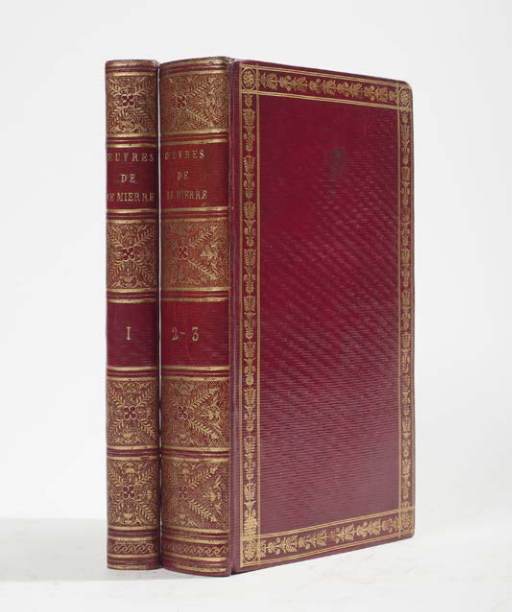 té, dos à nerfs orné, pièce de titre en maroquin rouge