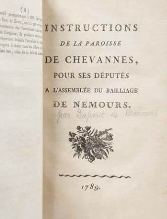 pont de Nemours). Instructions de la paroisse de Chevannes,