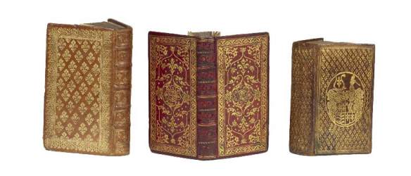 In-12, basane chamois, encadrement d’une large roulette dorée avec semé