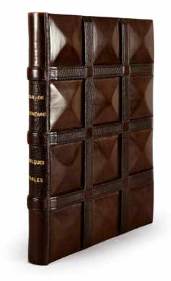 dos à nerfs, doublure de maroquin, gardes de daim brun clair, tranches dorées sur