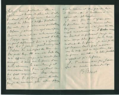 On joint une carte de visite d’Eugène Manet avec 3 lignes autogr. au crayon : « Paule, Albine ne vient pas poser, ta tante est souf-