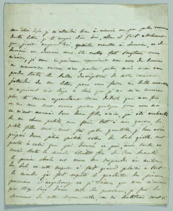 Longue lettre. « Ma chère Eglé, je m’attendois bien à recevoir un peu plus rarement de tes lettres, […] vous êtes restée fort longtems