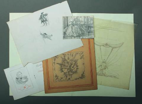projet d’un hors-texte. – 2°) deux maquettes-projets, l’une avec