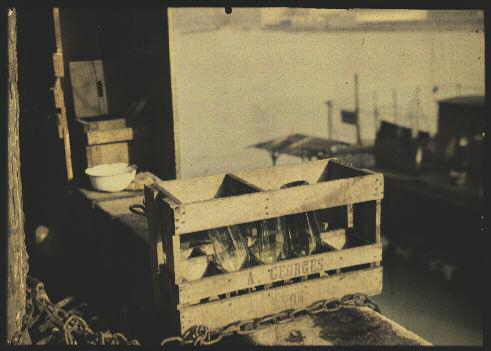 d'argent est coulée en dernier. La plaque est chargée à l'envers et les grains de fécule filtrent la lumière en arrêtant les rayons