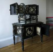 with inlaid ivory designs. The storage cabinet of this instrument (1862), which