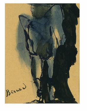 (Christian). Personnage. Plume, lavis et aquarelle, signé ; env. 16 x 21 cm.