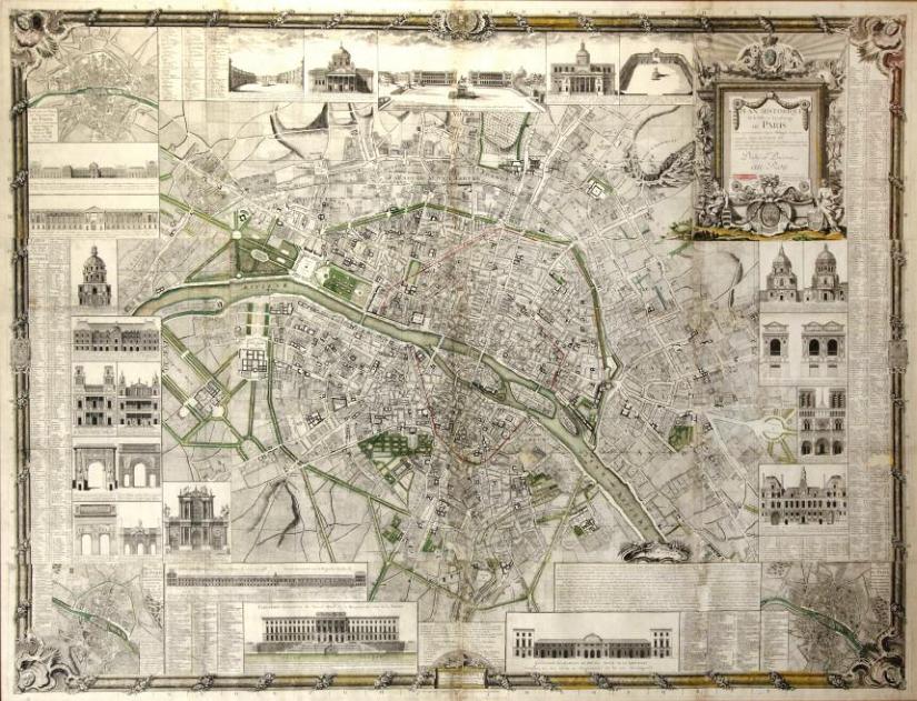 comprenant des vues de places royales, monuments historiques ou monuments récents ainsi que trois petits plans