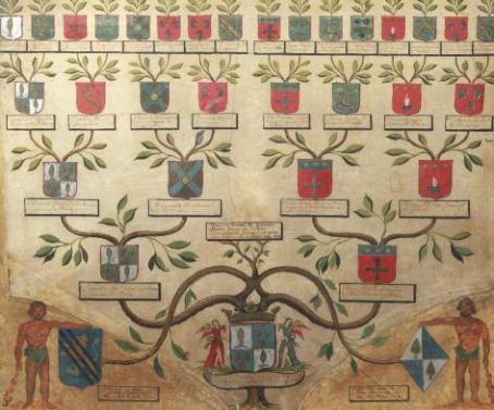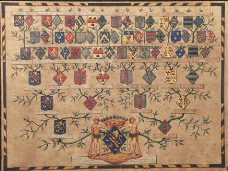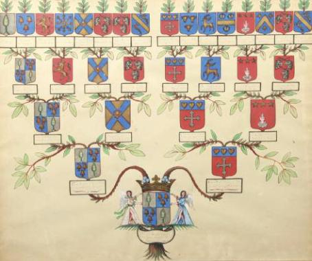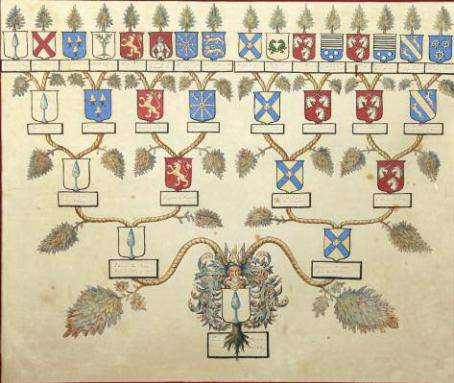 Arbre généalogique peint à la gouache sur vélin de « Ferdinand Éléonore d’ ALPY » seigneur de Paray XVIII