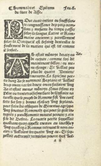 119 - BUDE guillaume. Sum[m]aire ou Epitome du livre de Asse fait par le comma[n]dement du Roy par maistre