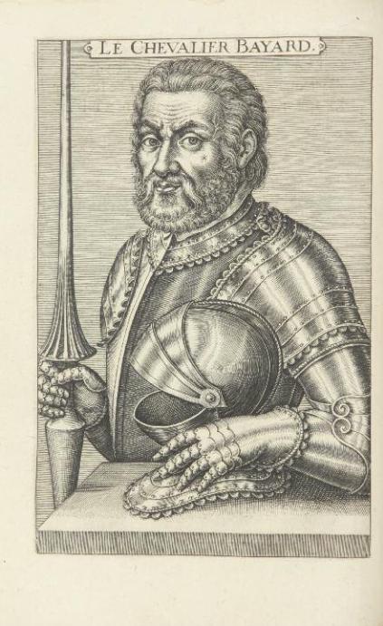 feuillet, d’un très beau portrait de Bayard gravé au burin anonymement