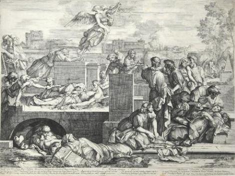 Eau- forte. Epreuve légèrement jaunie, coupée au sujet, quelques accidents,