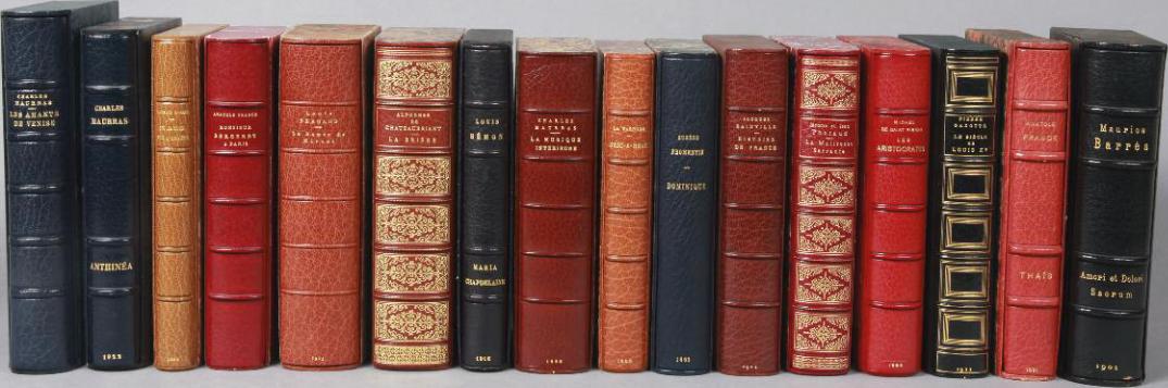 siècle demi-maroquin grenat à coins, dos à nerfs, tête dorée, couverture et dos, étui (