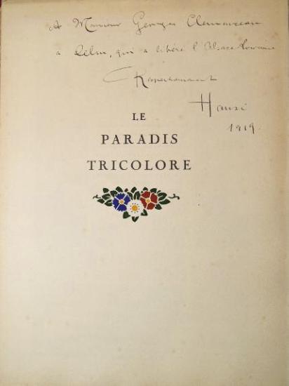 PRECIEUX EXEMPLAIRE OFFERT PAR L’AUTEUR AU « PERE LA VICTOIRE », AVEC ENVOI DATE 1919 :
