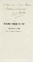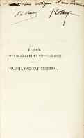 In-8° broché sous couverture imprimée originale, VII-135 [1] pages avec un ENVOI AUTOGRAPHE à Ranvier alors titulaire de la Chaire d’histologie au Collège de France. Rarissime thèse de doctorat de médecine soutenue à Paris devant Alfred Vulpian à qui il doit le sujet de sa thèse, un signe que celui-ci venait de remarquer et dont il confia l’analyse à son brillant élève. On joint