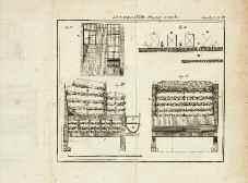 Grand in-4° relié plein maroquin grenat, dos à cinq nerfs, titre gravé, fleuronnés, filets sur les nerfs, (8), LXXIV, 472 pages et 17 planches repliées. 15 planches dépliantes gravées par Haussard et par Sellier, repré-sentant des plans d'hôpitaux. 3 tableaux sur 2 planches dépliantes.