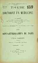 Les textes suivants (presque tous avec les plats de couverture d’origine) sont reliés à la suite : Jules DEJERINE, Des altérations des nerfs cutanés chez les ataxiques : de leur na-ture périphérique et du rôle joué par ces altérations dans la production des troubles de la sensibilité que l’on observe chez ces malades , tiré à part extrait des Archives de Physiologie normale et pathologique paginé 72-92 bel ENVOI AUTOGRAPHE de Jules DEJE-RINE sur la page de garde au Dr. Bouchard ; Léon BEAL, Contribution à l’étude du mal perforant buccal (Paris - Jouve - 1912), 72 pp. thèse de doctorat de médecine sou-tenue à Paris devant Jules Dejerine ; CL. PHILIPPE, Contribution à l’étude anatomique et clinique du tabes dorsalis - travail de la clinique des maladies du système nerveux (Paris - G. Steinheil - 1897), 173 pp. une planche hors-texte ; FRENKEL & Maurice FAURE, Des attitudes anormales spontanées ou provoquées dans le tabès dorsal sans ar-thropathies , tiré à part extrait de la Nouvelle Iconographie de la Salpêtrière , 8 pp., 4 planches hors-texte ; J. REBAUD, Du prurit tabétique avec ou sans lichénification (Paris - A. Michalon - 1908), 67 pp., thèse de doctorat de médecine soutenue à Paris le 1 er