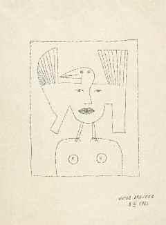 Dessin original à l’encre sur papier, daté 8. III. 1961 et signé au recto par Victor Brauner, dessin original de l’une des gravures de Brauner pour illustrer l’ouvrage d’Alain Jouffroy « Tire à l’Arc », publié par Arturo Schwarz en 1962.