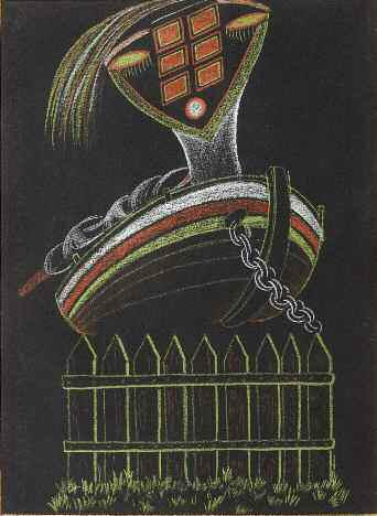 Cadavre exquis réalisé aux crayons de couleurs sur papier noir par Paul Eluard, Valentine Hugo et André Breton. Note autographe au verso au crayon blanc de la main de Breton indiquant le nom des participants. Exposition : Surrealism : Two Private Eyes. Reproduit dans le catalogue, n° 524. (volume 2).
