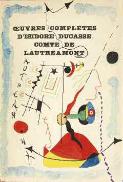 379 LAUTREAMONT Comte de. Œ UVRES COMPLÈTES . Contenant Les Chants de Maldoror, les Poésies, les Lettres, une introduction par André Breton, des illustrations par Victor Brauner, Oscar Dominguez, Max Ernst, Espinoza, René Magritte, André Masson, Matta Echaurren, Joan Miro, Man Ray, Seligmann, Tanguy, une table analytique, des Documents, Répercussions. Paris, G.L.M, 1938 ; fort in-8°, plein maroquin bordeaux, dos à filets dorés titré or, couverture conservée.