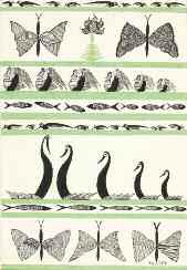 Dessin à l’encre de Chine et bandes horizontales aquarellées.