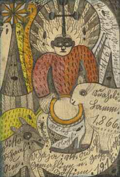 428 WÖLFLI Adolf. DESSIN AU CRAYON DE COULEUR SIGNE. 1866 – 1916 – 1917 ; 28,8 x 22 cm, sous encadrement.