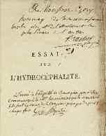 56 BRACHET (Jean-Louis). E SSAI SUR L ’ HYDROCÉPHALITE OU HYDROPISIE AIGUË DES VENTRICULES DU CERVEAU . Paris, Gabon 1818