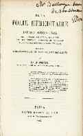 Grand in-8 broché, couverture d’attente, 29 pages. ENVOI AUTO-GRAPHE partiellement rogné à Baillarger sur la page de titre.