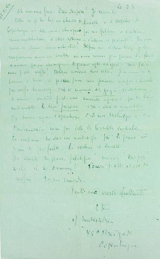 1950 à une personne non identifiée et signée de Copenhague L.F. Il lui donne des nouvelles de Lucette qui vient d’être opérée. Une page in-4. 700/800