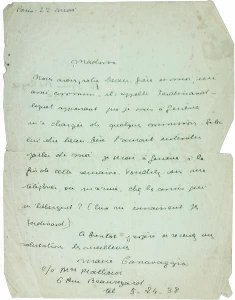 178. Lettre de Marie CANAVAGGIA à Madame BONY. De