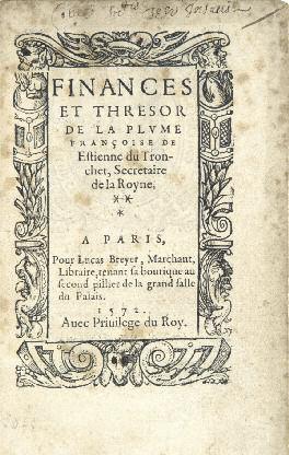 « Previous Page Table of Contents Next Page »86 DU TRONCHET (Étienne). Finances et thresor de la plume