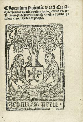 - Novum insigne quam opusculum pro Christi verbum evangeliam … S.l.n.d. [Paris, Jehan Petit]. – Speculum sapientie Beati Cirilli episcopi alias quadripartitus apologieticus vocatum. S.l.n.d. [Paris, Jehan Petit]. – Sacra preclarissima eloquia dicta quam aurea divi Hieronymi exunum Illustrissimi Christianissimi quam doctoris ecclesie catholice ... Paris, 13 novembre 1517.